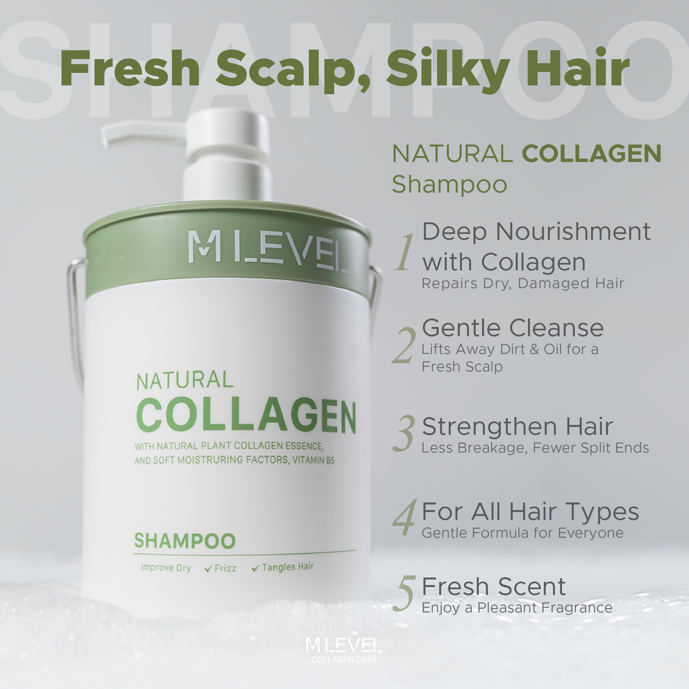 ✨ Kuasa Baik Pulih: Syampu Kolagen bukan hanya membersih, tetapi fokus kepada pemulihan dan penjagaan menyeluruh rambut.